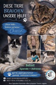 Aktuell fehlt es am dringensten an Geldspenden. Wir müssen im Moment sehr viele Tierarztrechnungen begleichen, denn viele unserer Schützlinge sind in einem schlechten Gesundheitszustand und benötigen OP's, Medikamente oder längere tierärztliche Behandlungen. Um auch weiterhin den vielen Notfellchen helfen zu können brauchen wir dringend finanzielle Unterstützung.