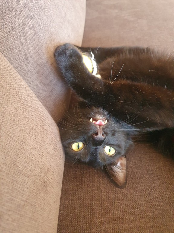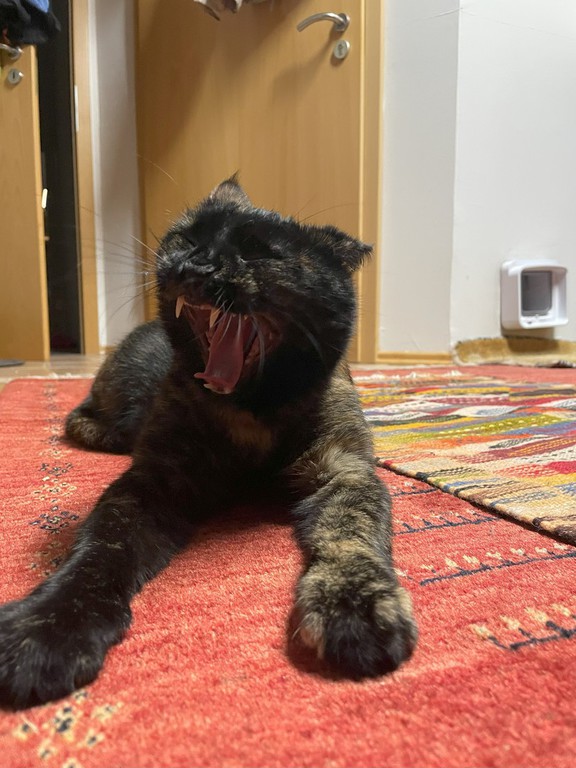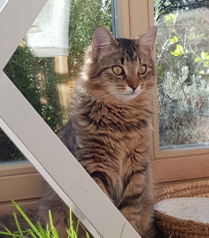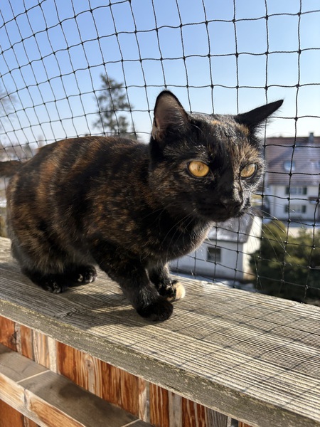 Sie hat einen starken Charakter und wollte und will unbedingt ins Freie – die Nutzung der Katzentüre zu lernen war ein Kinderspiel. Gleichzeitig leistet sie mir gerne Gesellschaft und ist sowohl eine Spiel- als auch eine Schmusekatze und springt auf den Schoß, die Schulter – alles, was gerade erreichbar ist und ihr Interesse erregt.