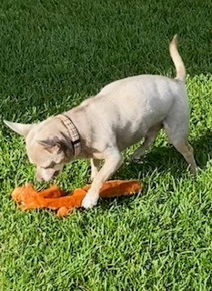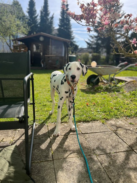 Meine Gehörlosigkeit ist übrigens gar kein Problem für uns alle. Frauchen und Herrchen sagen immer, dass ich auch nicht anders bin als andere Junghunde. Sogar einen Rückruf habe ich gelernt. Dazu habe ich ein tolles Halsband und immer wenn das vibriert, bekomme ich Leberwurst aus der Tube. Die liebe ich sehr, also komm ich natürlich schnell angelaufen, wenn das Halsband vibriert.