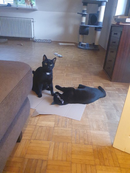 Eigentlich wollten wir ja nur eine Katze, aber als wir nach vereinbarten Termin die beiden gesehen haben, haben wir uns entschlossen auch beide zu nehmen.