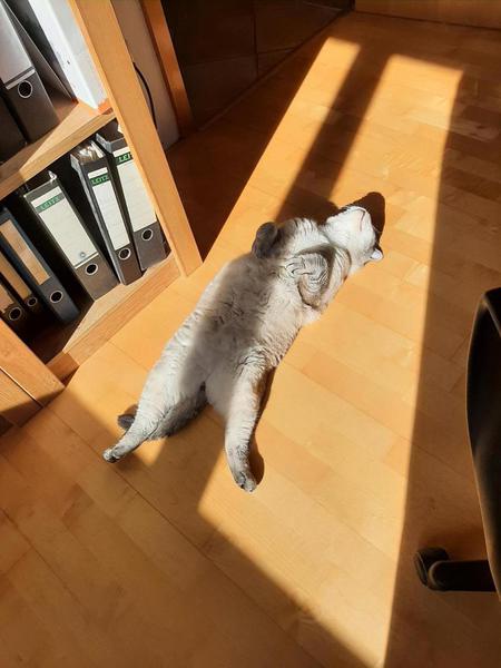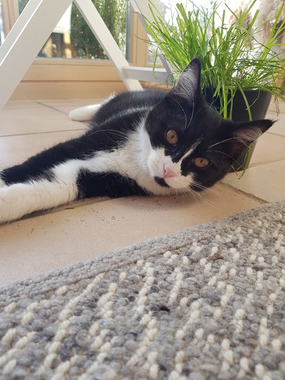 Er hat sofort wieder Vertrauen gefassen und gezeigen, wer er wirklich ist: neugierig, sanft, verspielt und verkuschelt mit einem Schnurren und Mauzen, das direkt ins Herz geht. Dadurch das er nun alleinige Aufmerksamkeit genießt, blüht er total auf, schleicht auf Samtpfoten durch die Wohnung, beobachtet mich im Homeoffice und fordert seine Streichel- und Spieleinheiten ein.