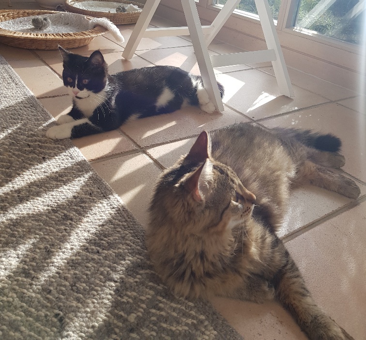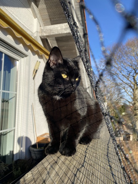Die ersten Tage gab es viel spannendes in ihrem neuen Zuhause zu entdecken. Der Balkon ist toll! Man kann Vögel oder Nachbarn beobachten und die frische Luft und ein paar Sonnenstrahlen genießen. Das gefällt den beiden sehr.