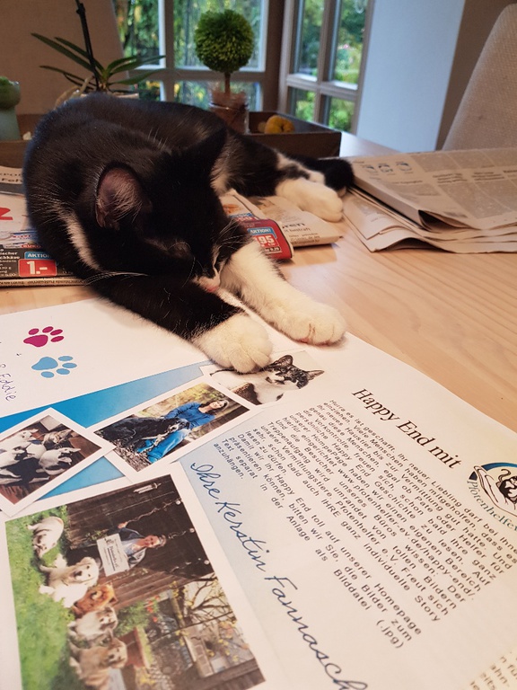 Anfang des Jahres haben sich meine beiden neuen Frauchen bei den Pfotenhelfern gemeldet, weil sie gern einer älteren Katze ein warmes Plätzchen und viele Streicheleinheiten schenken wollten. Sehr schnell hat auch eine liebe Pfotenhelferin das Zuhause besucht und dann ging es los mit der Suche nach der passenden Katze. Ich war lange in einem schönen Zuhause, aber leider ist mein Frauchen verstorben und so musste ich in eine Pflegestelle umziehen. Da war es auch ganz schön und ich bekam dann an einem Abend Besuch von meinen beiden neuen Frauchen. Die hab ich mir erst mal ganz vorsichtig angeschaut, aber mit meinem ruhigen Charme hab ich die Herzen der beiden sofort erobert und der Streicheltest wurde von beiden auch bestanden und mit meinem lauten Schnurren bestätigt. Eine Woche später durfte ich dann auch gleich bei den beiden einziehen. Hier habe ich mich sofort wohl gefühlt. Ich darf mit ins Bett und überall hin und werde ganz toll umsorgt und mit vielen Streicheleinheiten verwöhnt. Die Pfotenhelfer haben das ganz toll ausgesucht: Hier passe ich perfekt hin und ich und meine beiden Frauchen sind so glücklich. Auch die Besucher vom kleinen Frauchen und vom großen Frauchen lieben mich schon alle so sehr, dass es sogar eine Liste gibt, mit allen, die mich gern "klauen" würden.... ;-) Ja, ich bin wohl ein sanfter Herzensbrecher.... Viele Grüße von Eurem Pepe
