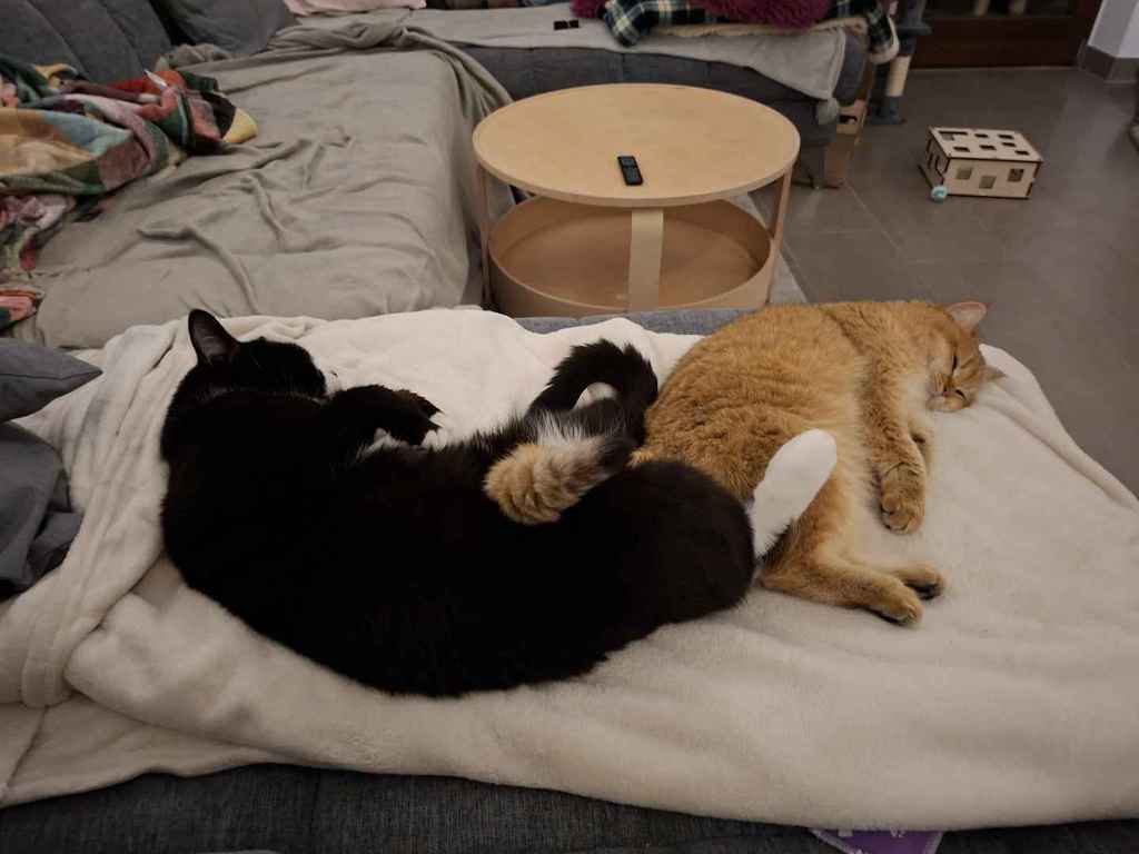gehört. Wir schmusen und kuscheln aber auch total gerne (sowohl miteinander als auch mit Mama und Papa), schlafen gern im Bett oder unter der Decke auf der Couch. Auch der Balkon wird fleißig