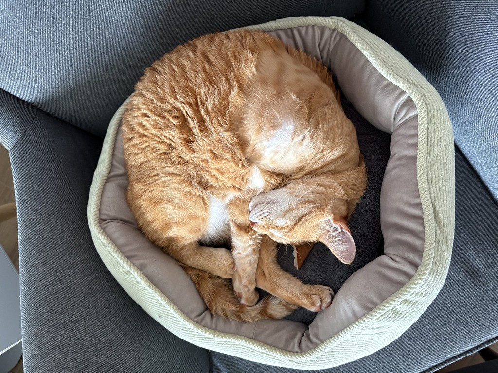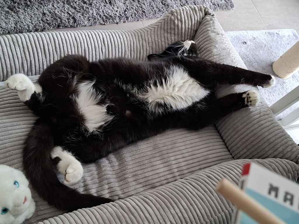 ich habe mich gut eingelebt in meinem neuen Zuhause. Hier bekomme ich viele Kuscheleinheiten und ich darf ganz viel mit meinen Lieblingsspielzeugen spielen. Die ersten Nächte habe ich sicherheitshalber direkt zwischen meinen Menschen im Bett geschlafen. Auch jetzt ist das Kuscheln meine absolute Lieblingsbeschäftigung. Jetzt schlafe ich nachts ganz selbstbewusst in meinem Körbchen auf meinem Thron (ähhm natürlich auf dem Lesesessel).