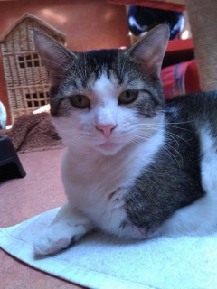Quasi kam zu uns, als wir auf einem Bauernhof ein Kastrationsprojekt durchgeführt haben. Er war in einem erbärmlichen Zustand: Eine Vorderpfote war gebrochen!
