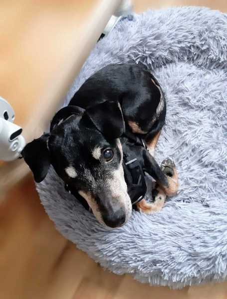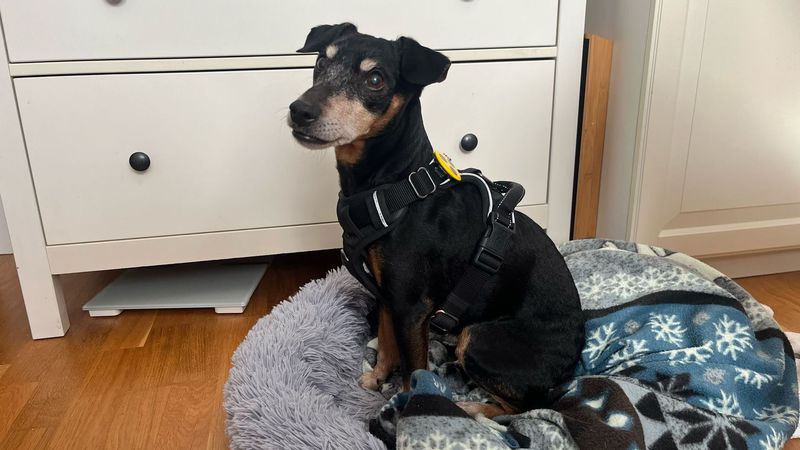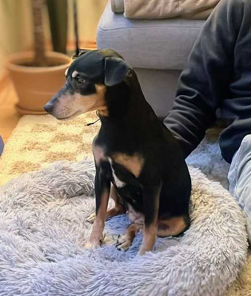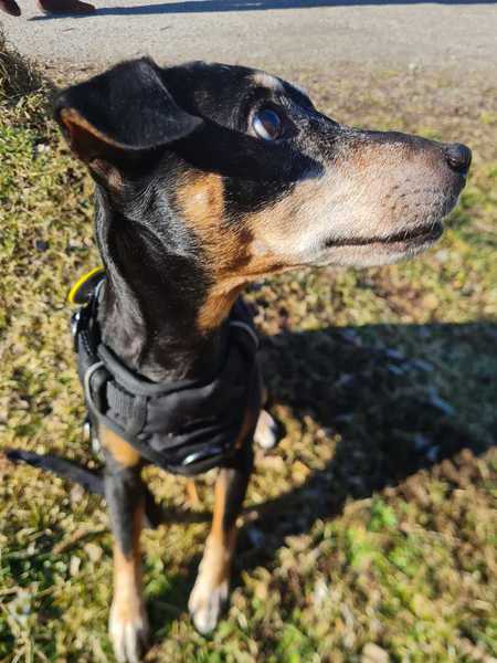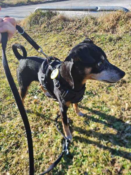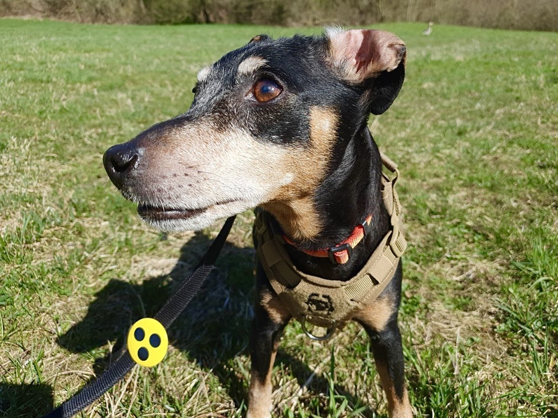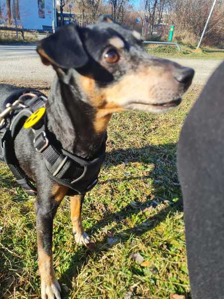 Die 12-jährie Pinscher-Mix Dame Bella ist blind. Dadurch hat sie Angst vor anderen Hunden und bellt diese an, damit sie ihr fern bleiben, sobald sie diese riecht.