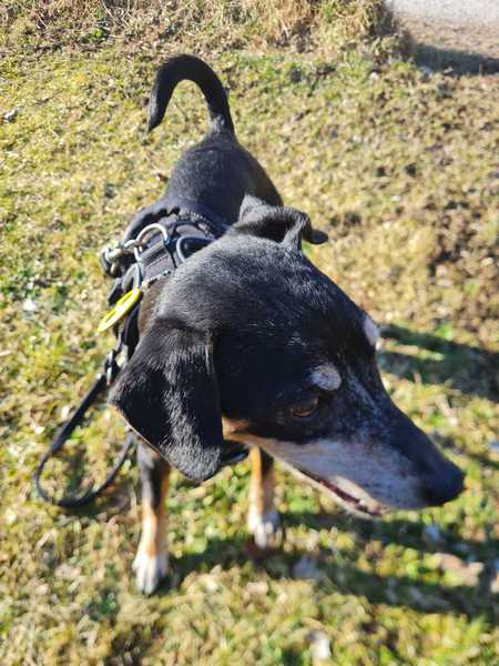 Bella ist 12 Jahre alt, blind und dennoch voller Lebensfreude. In vertrauter Umgebung kommt sie gut zurecht und liebt Spaziergänge. Sie läuft gut an der Leine, neigt aber dazu, alles Essbare aufzunehmen.