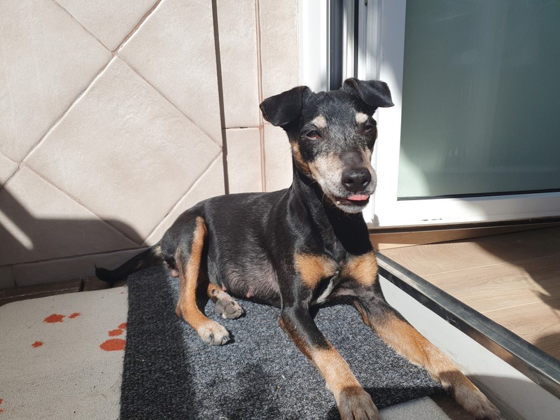 Im Haus ist Bella ruhig, unauffällig und stubenrein. Menschen gegenüber zeigt sie sich freundlich, sucht Nähe und genießt Streicheleinheiten.