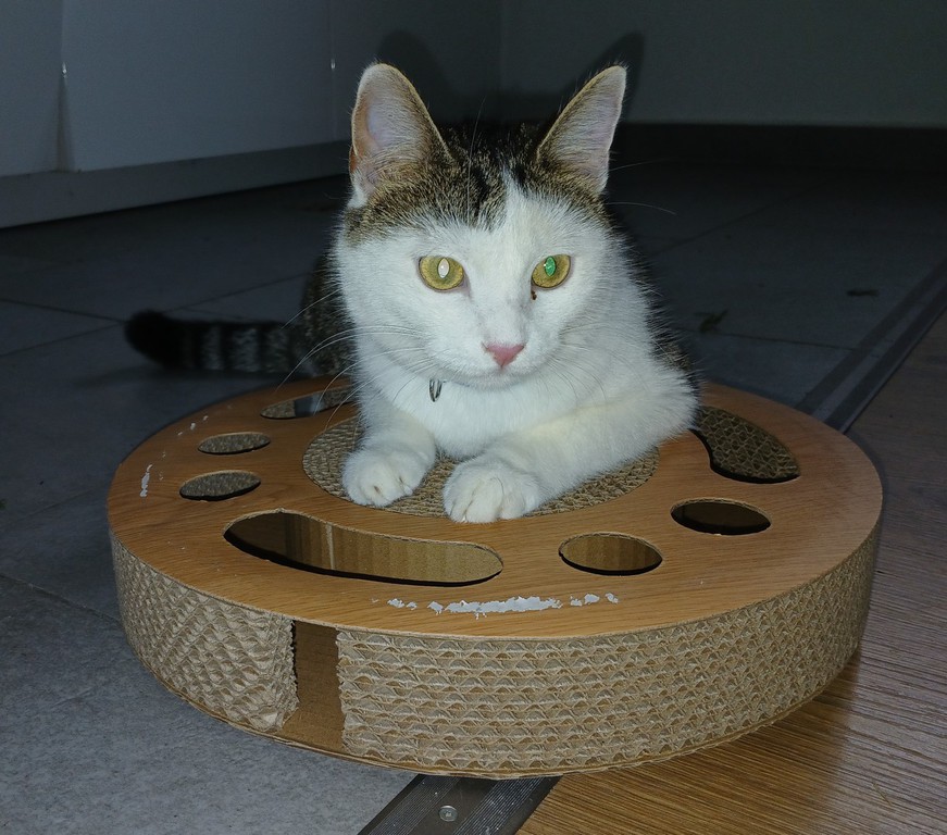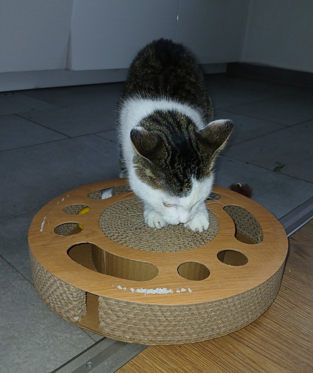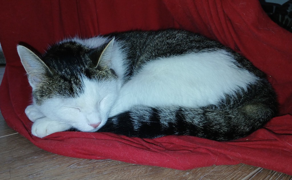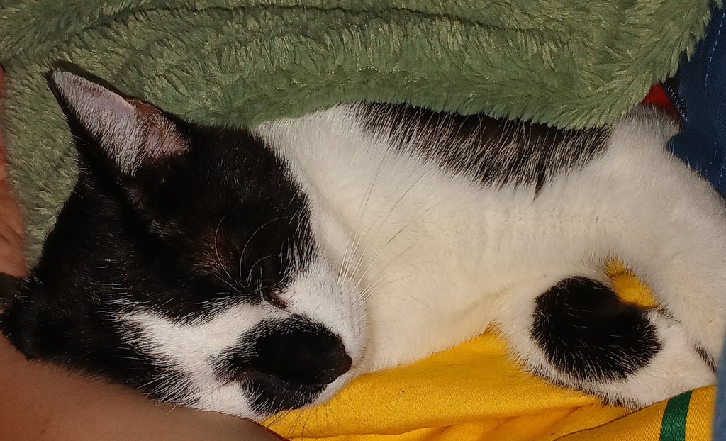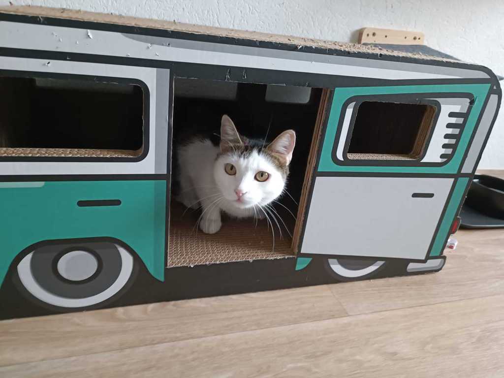 Cocco (getigert) ist verschmust und den Menschen gegenüber sehr zugänglich. Sie liebt es im Wäschekorb zu schlafen.
