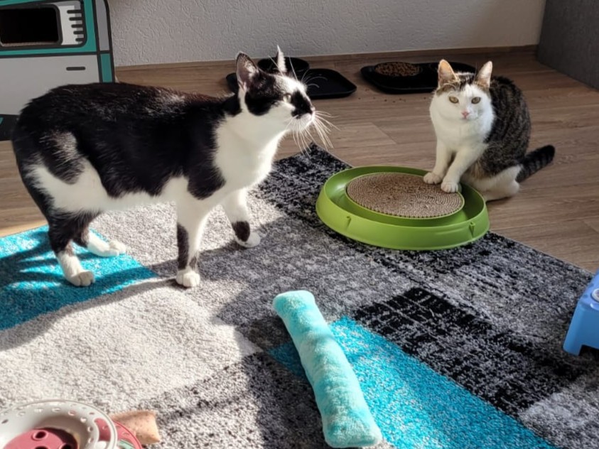 Beide wünschen sich im neuen Zuhause Freigang nach einer entsprechend langen Eingewöhnung. Ihr neues Zuhause sollte deshalb in einer ruhigen Gegend ohne gefährliche Straßen liegen.