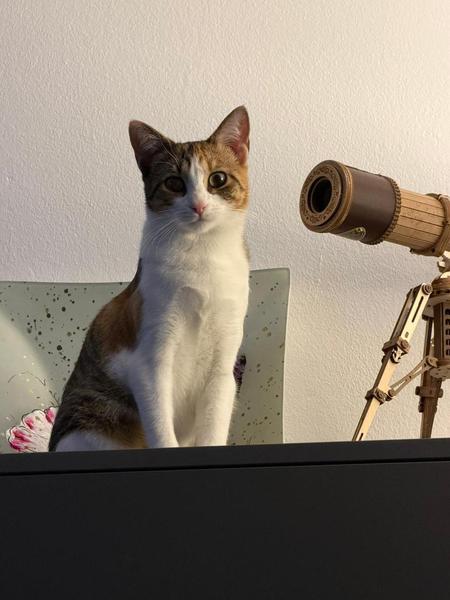 Daffy ist eine leicht schüchterne, eher Abstand suchende Katze. Bei Fremden oder bei Trubel versteckt sie sich. Sie lässt sich mit Spielen aus der Reserve locken, ist dabei aber eher zurückhaltend. Sie sucht aber auch die Nähe und tigert gerne bei ihren Menschen umher. Wenn sie will schmust sie sehr gerne und sehr intensiv. Sie ist eine richtige Genießerin, wenn sie am Kopf gekrault wird. Legt sich auch gerne auf ihre Menschen. Bei Homeoffice ist sie eine willkommene Abwechselung und fordert ihre Streicheleinheit ein, oder „arbeitet“ gerne auch mal mit.