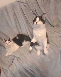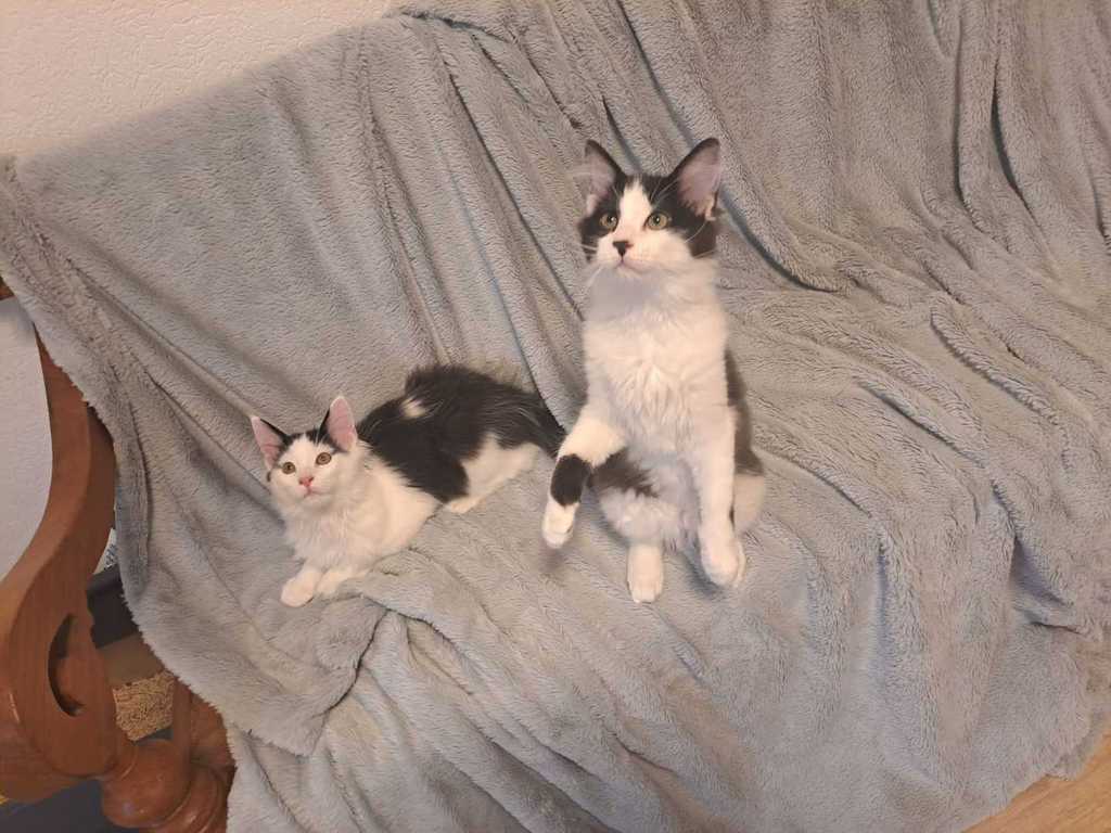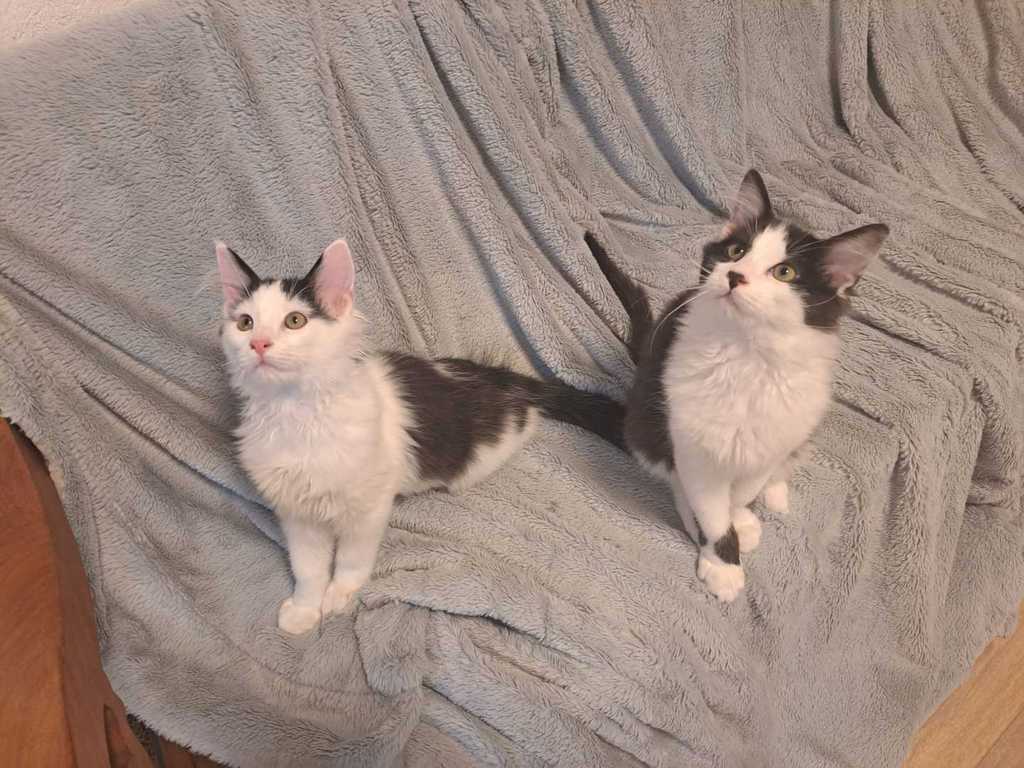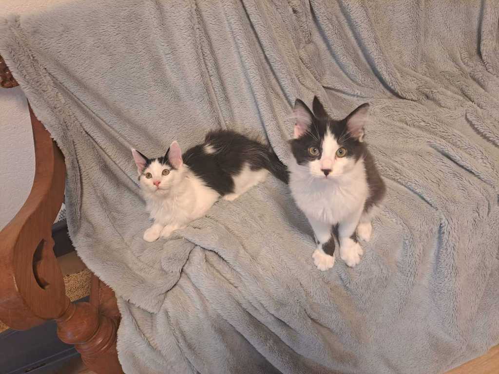 Sie sind kitten-typisch sehr aktiv und benötigen viel Aufmerksamkeit ihrer Menschen. Außerdem müssen sie noch mehrmals am Tag gefüttert werden. Deshalb eignen sie sich leider nicht für eine voll berufstätige Familie. Beide sind sehr liebenswerte Katzenkinder.