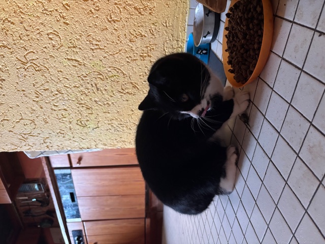 Mit anderen Katzen und auch Hunden kommt sie gut zurecht, und auch kleine Kinder kennt sie bereits. Sie ist beim Futter nicht wählerisch und frisst sowohl Nass- als auch Trockenfutter ohne besondere Vorlieben.