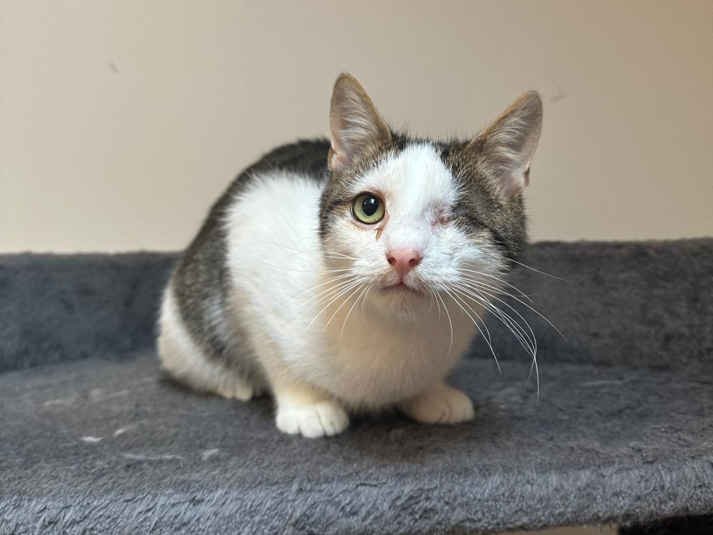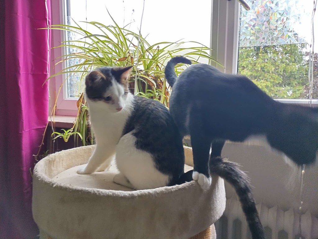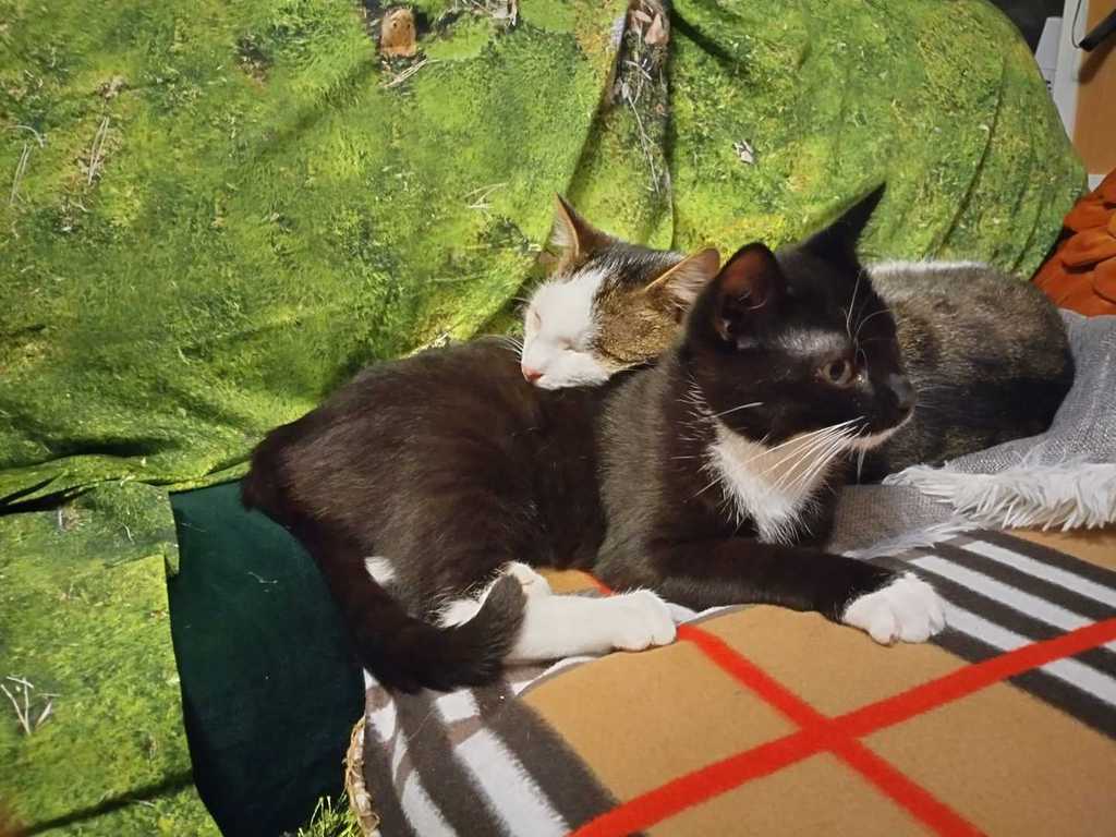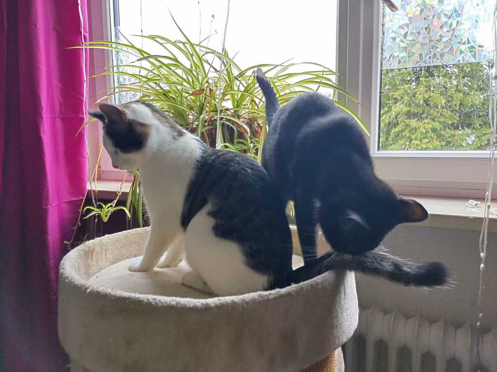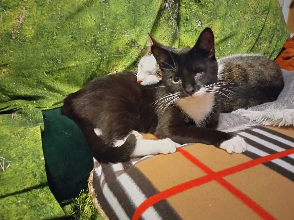 Unsere beiden einäugigen Katzen Micky (schwarz-weiß) und Salem (getigert) suchen gemeinsam ihr neues Zuhause in einer Wohnung mit einem bereits vernetzten Balkon.