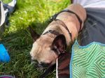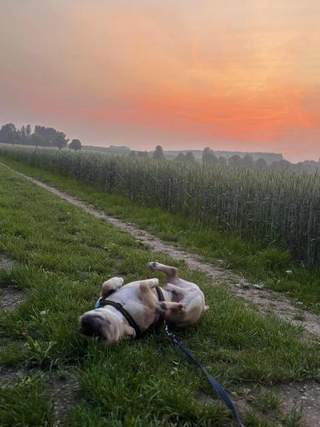Da er sehr menschenbezogen ist, ist er nicht gern alleine, wird dann unruhig, winselt und kann auch mal bellen. An der Leine ist er unkompliziert. Bei anderen Hunden entscheidet die Sympathie, ob er mit Kleinkindern und Katzen zurechtkommt wissen wir nicht.
