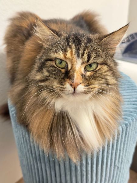Sie wird ausschließlich in Wohnungshaltung vermittelt, idealerweise mit einem vernetzten Balkon, damit sie sicher frische Luft schnuppern und die Welt beobachten kann. Freigang ist nicht vorgesehen.