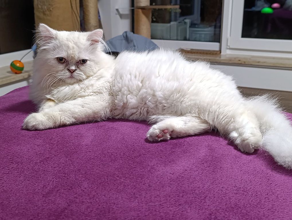 Sky ist sehr selbstbewusst, fremdelt überhaupt nicht und ist auch nicht nachtragend. Er geht brav auf sein Katzenklo und lässt sich sehr gerne bürsten.