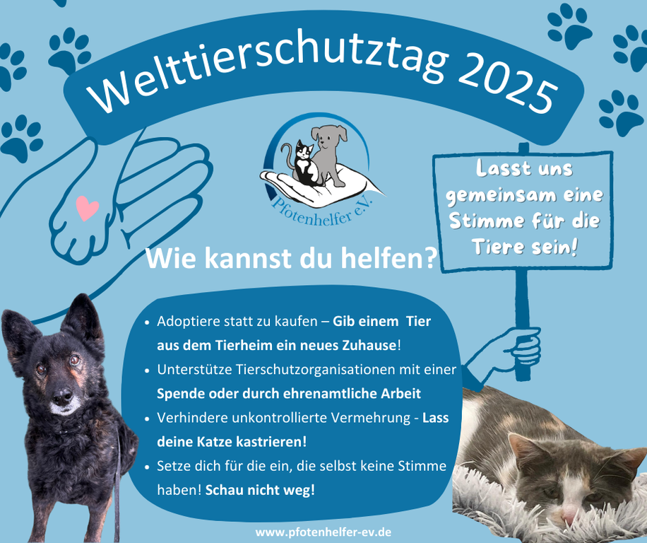 Sie können aktiv helfen und damit wichtige Tierschutzarbeit übernehmen, auf die wir angewiesen sind.